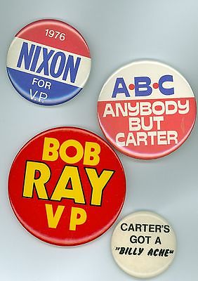 Title (ebay affiliate link): 4 Vintage 1976 Anti Jimmy Carter Political Campaign Pinback Buttons Nixon For VP