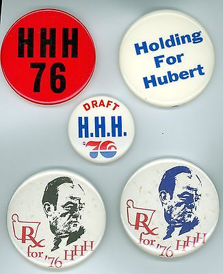 Title (ebay affiliate link): 5 Vintage 1976 HHH President Hubert Humphrey Political Campaign Pinback Buttons