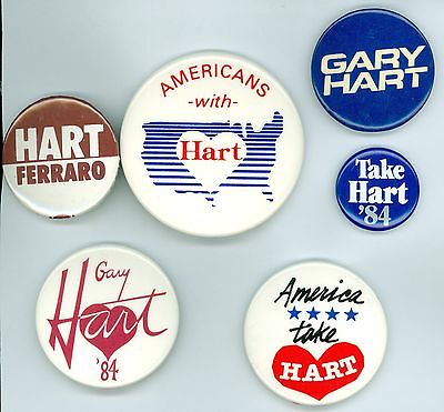 Title (ebay affiliate link): 6 Vintage 1984 President Gary Hart Political Campaign Pinback Buttons