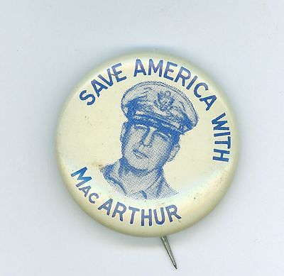 Vintage 1948 Save America General Douglas MacArthur Political Pinback Button