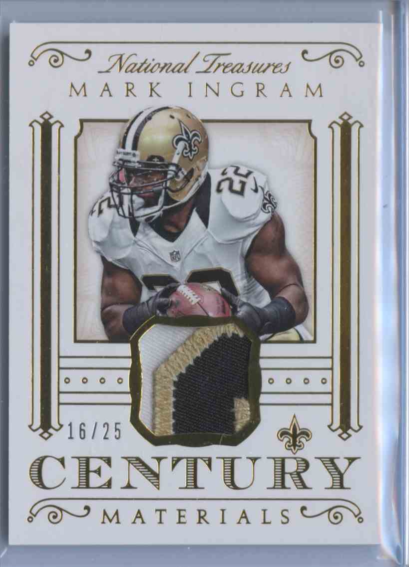 Title (ebay affiliate link): 2015 National Treasures Mark Ingram Century Materials Patch #ed 16/25 Saints