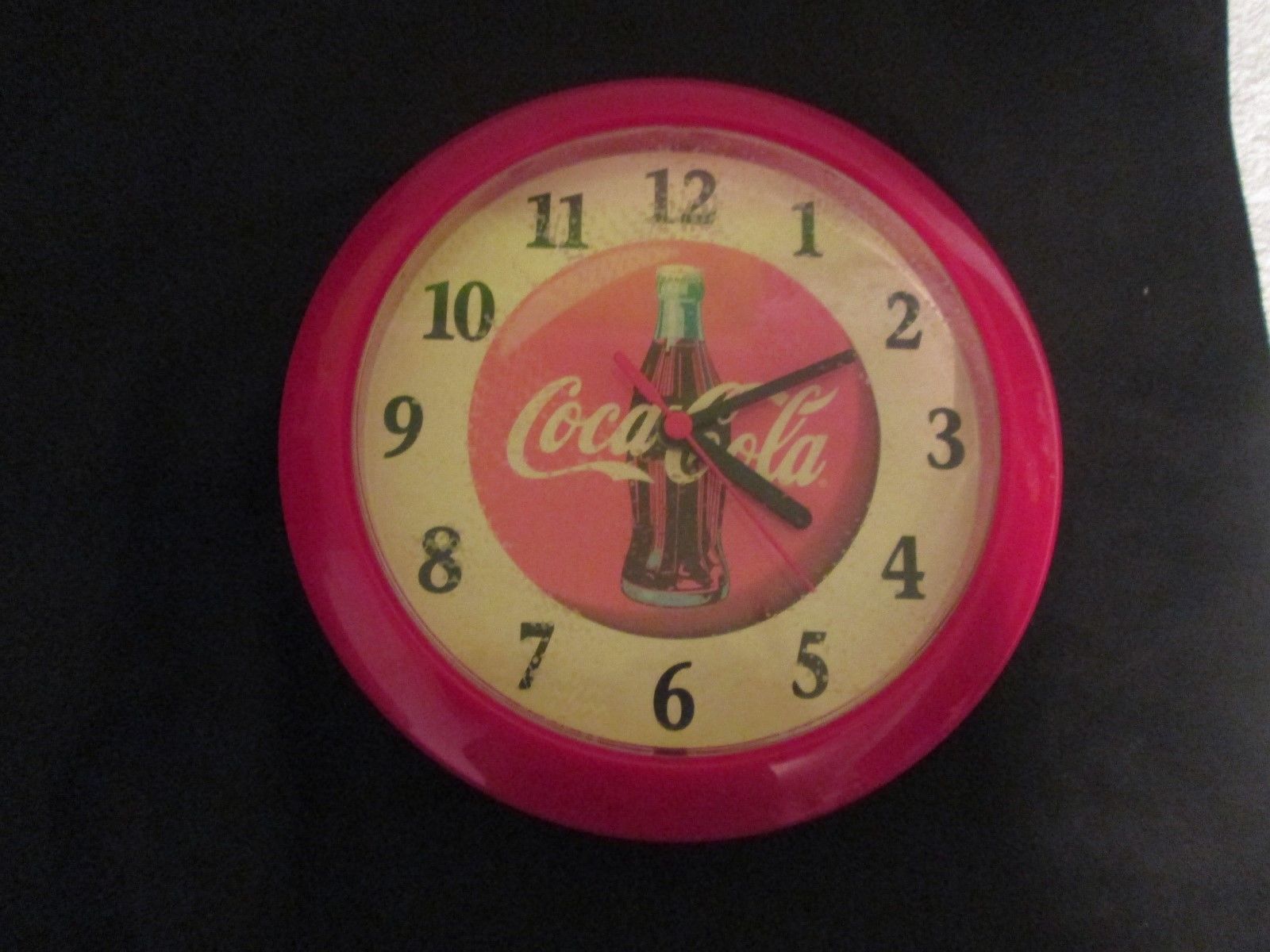 Title (ebay affiliate link): Round Red Plastic Coca Cola Coke Wall Hanging Clock