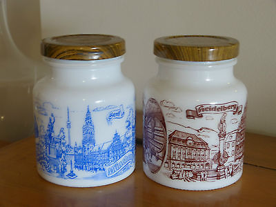 RARE! PAIR OF VINTAGE BELGIUM MILK GLASS CANISTERS!