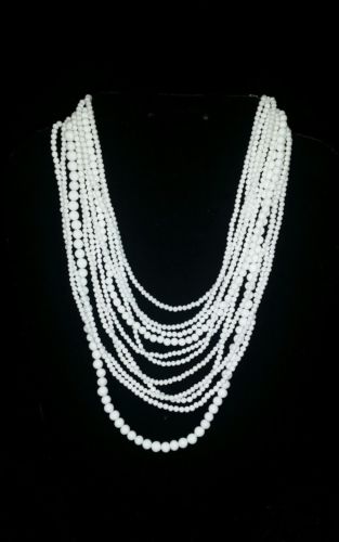 Title (ebay affiliate link): VINTAGE rare MILK GLASS 11 strand CHOKER NECKLACE ANTIQUE white graduated bead