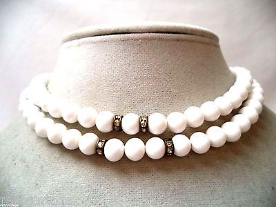 STUNNING VINTAGE ESTATE GOLD TONE MILK GLASS CRYSTAL BEADED NECKLACE!!! 6050A