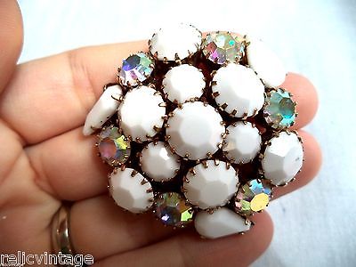 STUNNING VINTAGE ESTATE GOLD TONE UNSIGNED WEISS MILK GLASS BROOCH!!! 5255S