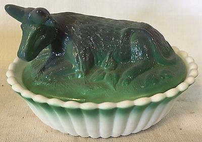 Milk Glass Airbrushed Cow on Ribbed Base - Westmoreland Glass mould