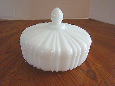 Vintage milk glass white round candy dish with lid - EUC