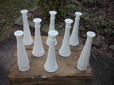 Lot of 8 Vintage White Milk Glass Bud Vases Party Florist Weddings Baby Showers
