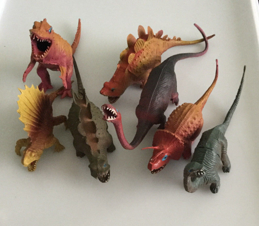 Title (ebay affiliate link): Vintage Lot of 7 Plastic Dinosaurs Most Made in Hong Kong
