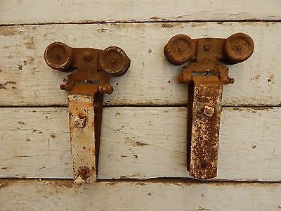 2 Antique Barn Door Track Rollers ~ Old Vintage Farm Hardware Parts 1344