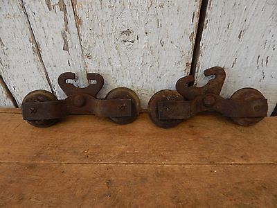 2 Antique Barn Door Track Rollers ~ Old Vintage Farm Hardware Parts 1363