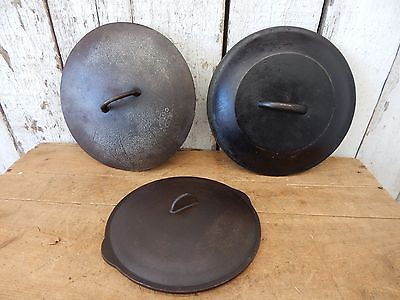 3 Antique Cast Iron Skillet / Dutch Oven Lids ~ Vintage Kitchen Cookware 1375