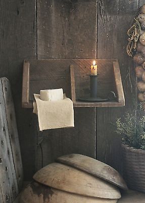 Primitive Early Look Wood Wall Box Shelf Cubby w/Soap/Towel/Candle Holder