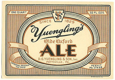 IRTP Label: Olde Oxford Ale, from Yuengling, in Pottsville, PA