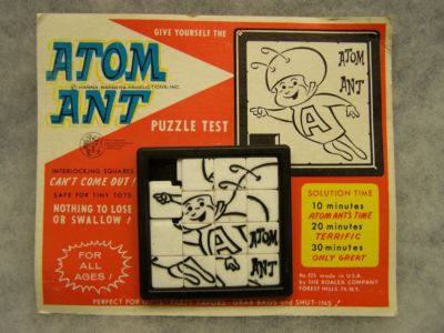 VINTAGE ATOM ANT PUZZLE TEST TOY MINT ON CARD NR