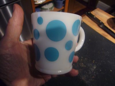 VINTAGE HAZEL ATLAS MILK GLASS MUG BLUE DOTS
