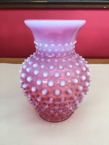Title (ebay affiliate link): Vintage Fenton Opalescent Milk Glass Pink Translucent Hobnail Vase