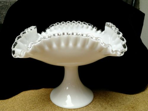 Title (ebay affiliate link): Fenton Silver Crest square footed Bowl compote milk glass banquet fruit