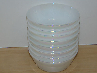 Title (ebay affiliate link): Set of Eight Federal Glass Iridescent Moonglow Milk Glass BowlEx. Condition