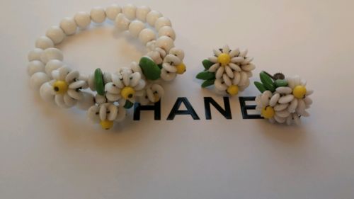 West Germany vintage daisy milk glass screw-back earrings bracelet set