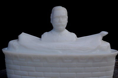 Antique MILK GLASS BATTLESHIP Admiral DEWEY EAPG Flaccus Covered Dish