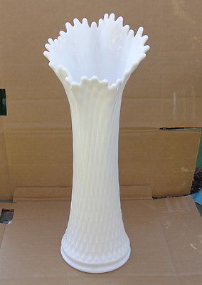 VINTAGE RARE WESTMORELAND VASE ART MILK GLASS QUILTED
