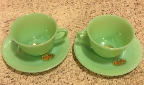 2 Vintage Fire King Jade-Ite Jadeite Green Milk Glass Coffee Cup & Saucer NOS!