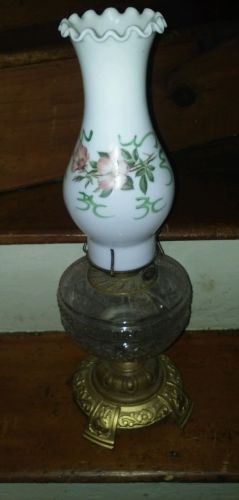Antique Bradley & Hubbard Oil Lamp & Milk Glass Chimney