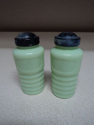 Vintage Jadite / Milk Glass Salt & Pepper Shakers w/Lids
