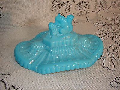 VTG Vallerysthal Co. France Squirrel Finial Blue Milk Glass Dish - LID only