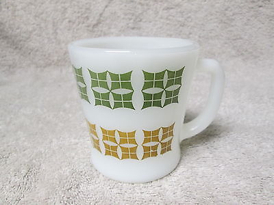 Vintage Fire King D Handle Milk Glass Coffee Mug-Green,Brown Diamonds-EXC!