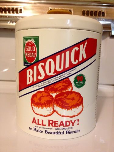 Title (ebay affiliate link): Old Fashioned Tin Can For Bisquick Biscuit Mix By Bristol Ware 1982 Made In USA