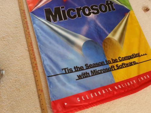 RARE HUGE Microsoft satin Advertising Store Banner 3x4 ft.2995 Holiday, Christma