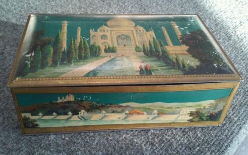 Title (ebay affiliate link): Vintage Tin Litho Biscuit Candy Box FEDERAL TIN CO Baltimore MD Taj Mahal