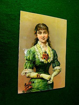 Victorian Trade Card Moses' Cough Drops Lovely Lady Fancy Dress Morbid Poem Back