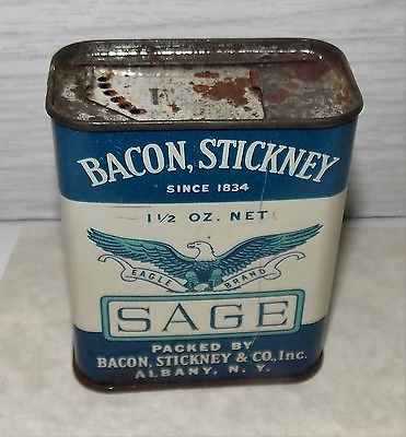 Title (ebay affiliate link): HTF BACON STICKNEY EAGLE BRAND 1 1/2 OZ. SAGE SPICE TIN ALBANY NEW YORK