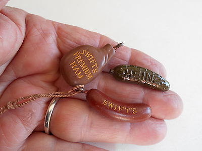 Title (ebay affiliate link): SWIFT'S PREMIUM HAM CHARM, SAUSAGE CHARM, AND A HEINZ PICKLE PIN