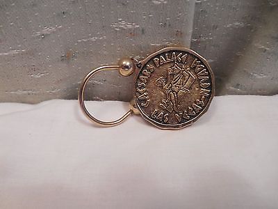 VINTAGE SOUVENIR CAESARS PALACE, LAS VEGAS, NEVADA KEY CHAIN ROUND GOLD TONE