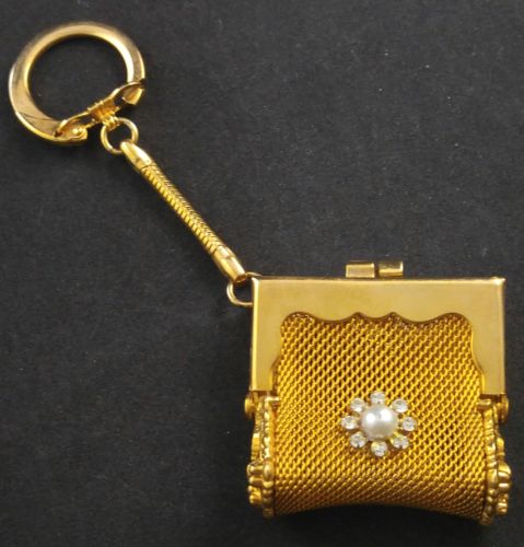 Title (ebay affiliate link): Vintage Key Chain Dangle Purse Flower Rhinestone Cabochon Gold Tone Unique T38