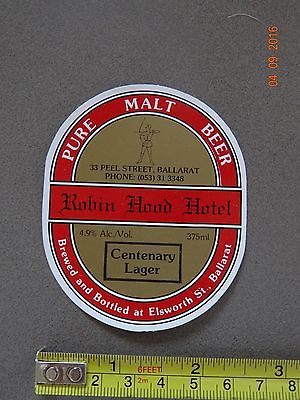 Title (ebay affiliate link): 1 x 375ml ROBIN HOOD HOTEL CENTENARY LAGER BALLARAT AUSTRALIA BEER LABEL BH53
