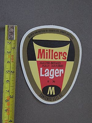 1 x OLD RETRO 13 FL OZ MILLERS LAGER AUSTRALIA BEER LABEL BH53