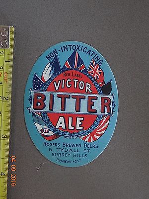 1 x OLD RETRO VICTOR BITTER ALE SURRY HILLS SYDNEY AUSTRALIA BEER LABEL BH53