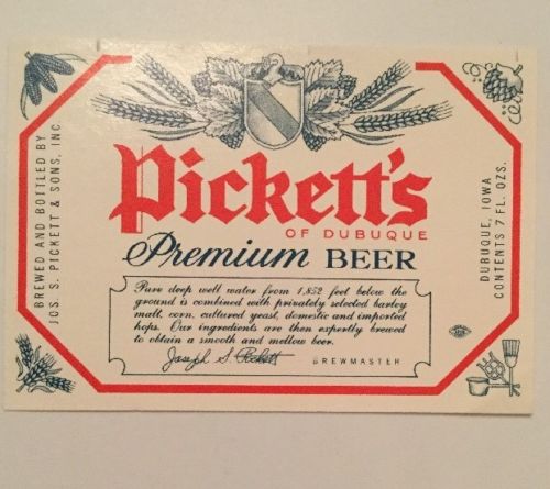 Title (ebay affiliate link): Unused Vintage Beer Bottle Label: Pickett's Premium Beer Dubuque Iowa Brewery