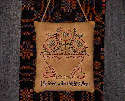 Title (ebay affiliate link): Hand Stitched Primitive Stitchery Pillow - Blessed with the Best Mom - Flowers