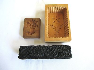 VINTAGE PRIMITIVE WOODEN HANDCARVED BUTTER COOKIE MOLD STAMPS