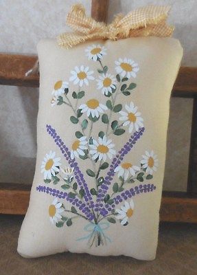 Title (ebay affiliate link): Primitive Folk Art SUMMER Pillow Tuck Handpainted Bouquet Flowers & Daisies