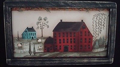 Title (ebay affiliate link): Primitive Country Print *2--SALTBOX HOUSES* in black frame 12 1/2" x 7 1/2"