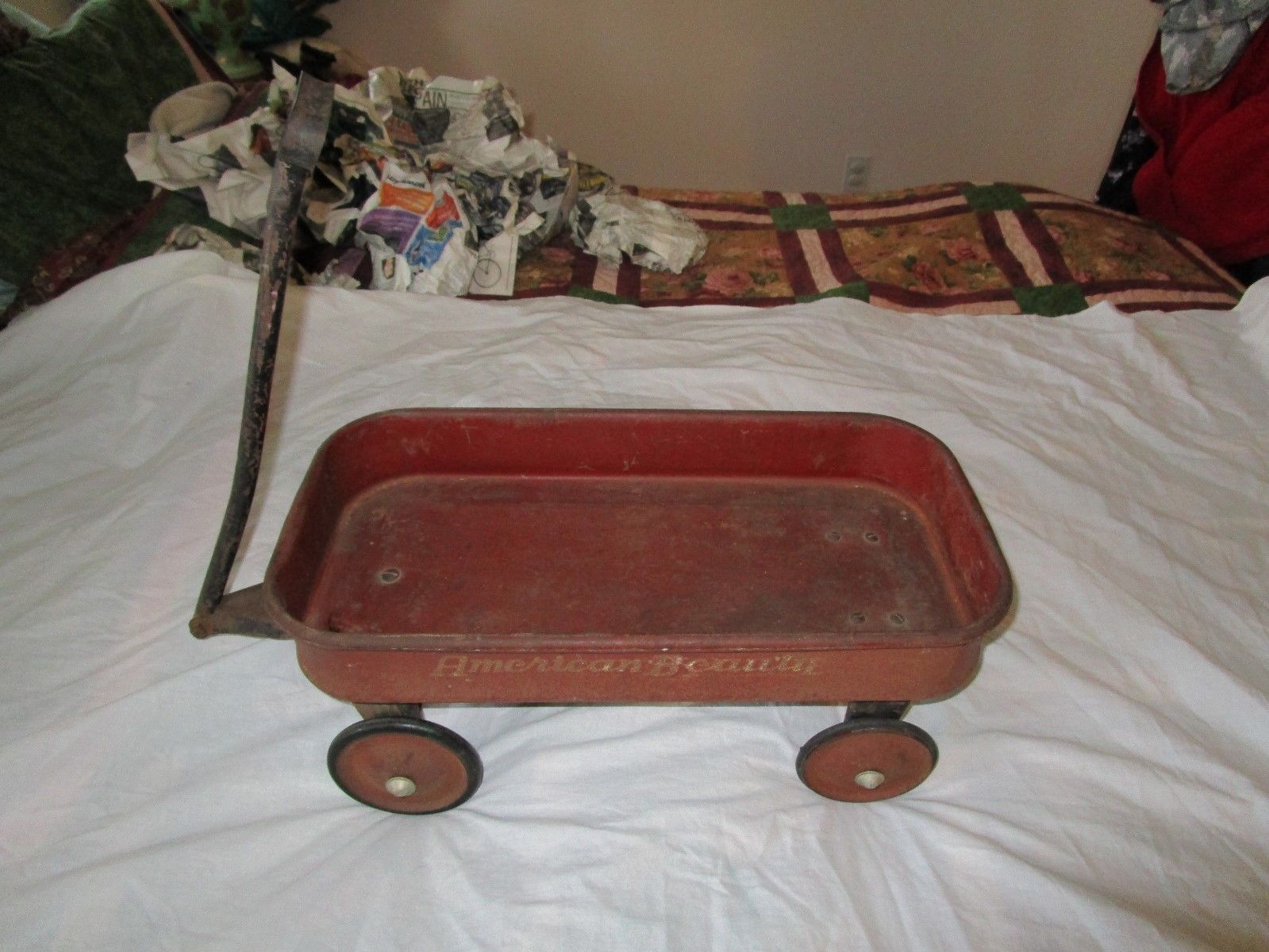 Title (ebay affiliate link): Antique American Beauty Little Red Wagon Vintage Primitive Farm Chic Decor