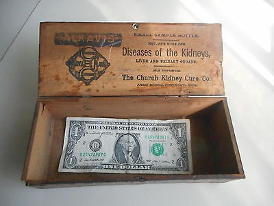 Title (ebay affiliate link): Small antique Wooden "Church Kidney Cure" Sample Bottles. Antique Medicine Box
